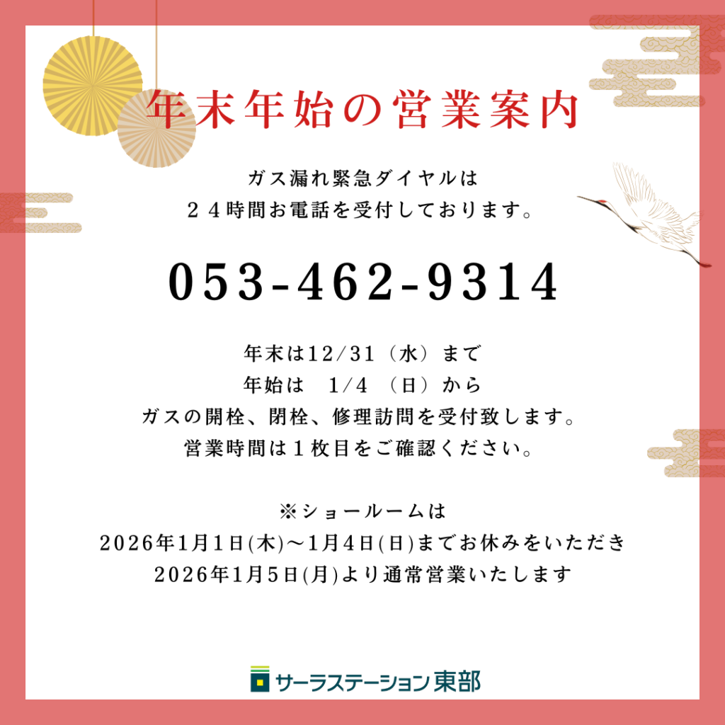 年末は12/31(水)まで、年始は 1/4 (日)から